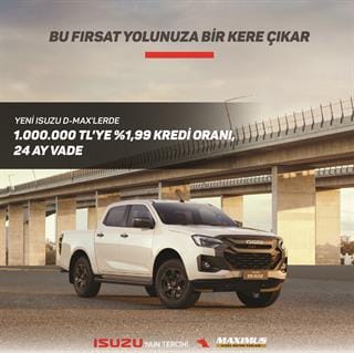 Sadece Türkiye pazarı dahil, birçok ülkede pick-up modellerde, en popüler araçlardan biri olan D-Max modellerinde geçerli olan ve 30.11.2024 tarihine kadar sürecek olan kampanya; araç sahibi olmak isteyenlere 1 milyon TL’ye, 24 ay yüzde 1.99 faiz fırsatı sunuyor.
