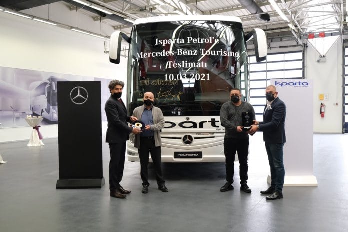 Şehirler arası otobüs pazarının lideri Mercedes-Benz Türk, Isparta Petrol Turizm’e 4 adedi Tourismo 16, 2 adedi de Tourismo 16 2+1 olmak üzere 6 otobüsün teslimatını gerçekleştirirken, şirketin 2020 yılında verdiği toplam 25 araçlık sipariş de tamamlandı.