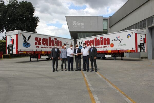 Müşterilerinin ihtiyaçları doğrultusunda geliştirdiği en geniş ürün gamıyla sektöre yön veren ve lojistik firmalarının ilk tercihi olmaya devam eden Tırsan’ın gerçekleştirdiği teslimat törenine; Tırsan Treyler Yönetim Kurulu Başkanı Çetin Nuhoğlu, Şahin Nakliyat Yönetim Kurulu Başkanı Memik Hilmi Taner, Yönetim Kurulu Üyesi Abdullah Taner, Tırsan Treyler Satış Koordinatörü Ertuğrul Erkoç ve Tırsan Treyler Satış Uzmanı Orkun Demir katılım gösterdi.